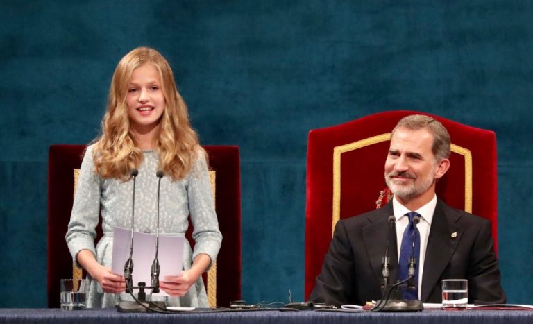 At the age of 13, several public appearances were made by Princess Leonor for the first time. The Magna Carta was read as her inaugural public address, while awards associated with the Order of Civil Merit Ceremony were presented by her and her father.